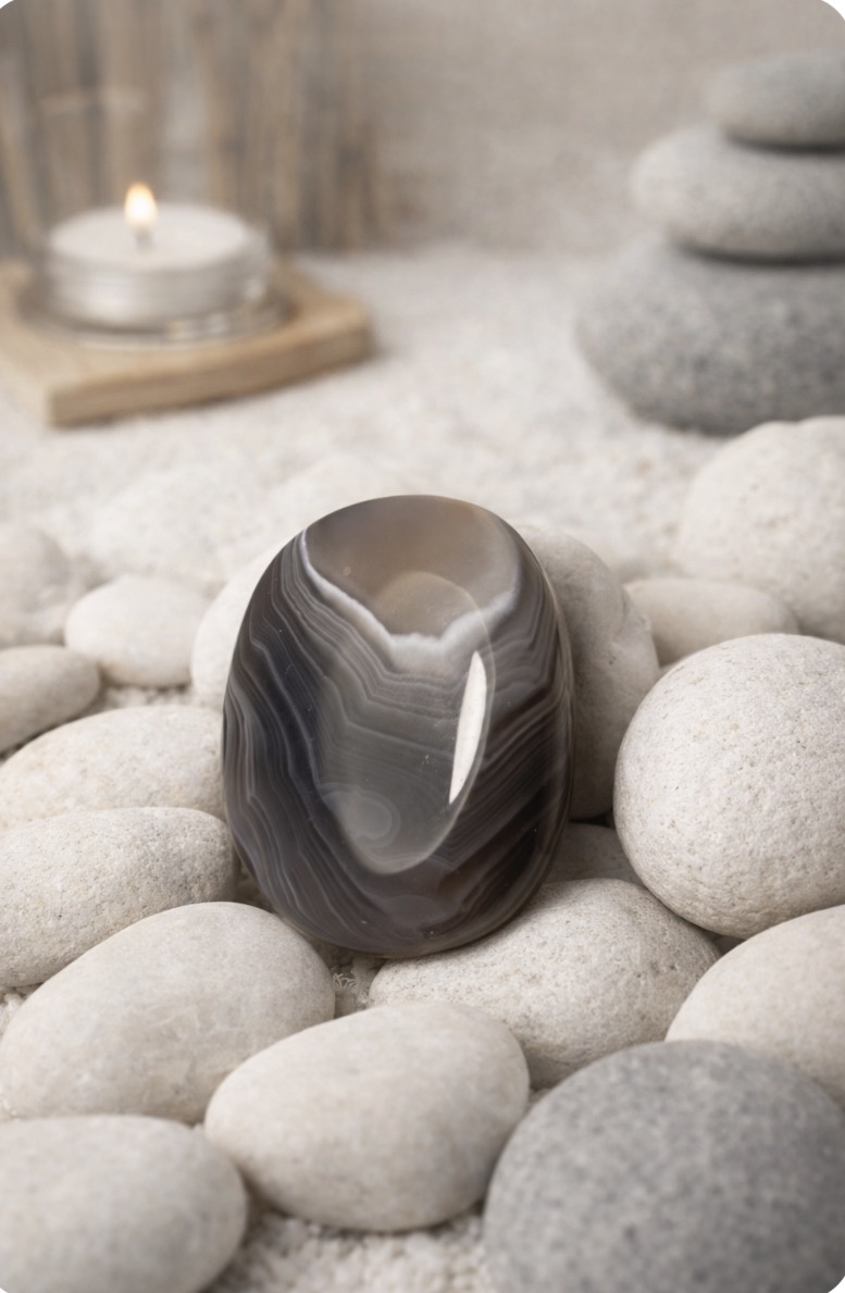 L’ Agate Botswana est bien connue pour la purification du corps ainsi que de l’esprit. Par ce fait elle permet de lutter efficacement contre tout ce qui empoisonne l’ être. (tabac, alcool, stress… ). Grace a cela elle sera très utile afin de retrouver plus d’énergie et également de réussir a retrouver des idées claires.